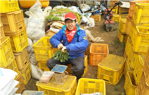 2日目は雨だったため、からし菜の漬物を仕込む作業を手伝いました(写真)。からし菜にゴリゴリ塩をすりこむ作業が印象に残っています。こんな作り方見たことないぞ、って(笑)。