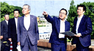 (写真 横芝光町を視察する森田知事【右】と夏目社長【右から3人目】)