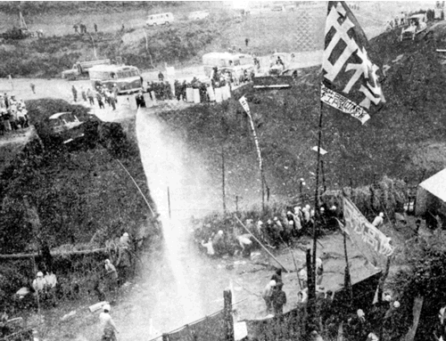 ついに深夜11時半、公団は撤退した。翌27日も早朝から地下壕破壊が開始された。外の反対同盟と支援部隊も負けじと早朝から全力動員態勢をとった。前日に続いて何十回となく機動隊への突撃が続く。壕のなかの同志たちはすでに40数時間を経ていたが、深夜1時半に公団がこの日の工事をやめるまで勇敢に戦い抜いた。