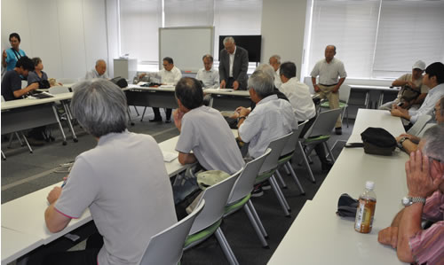 報告集会では、葉山岳夫弁護士をはじめ弁護団が決意を述べ、市東さんの農地取り上げに反対する会、ユニオン習志野の連帯発言に続き、反対同盟決戦本部長の太郎良陽一さんが8・10請求異議裁判への全力決起を呼びかけた。