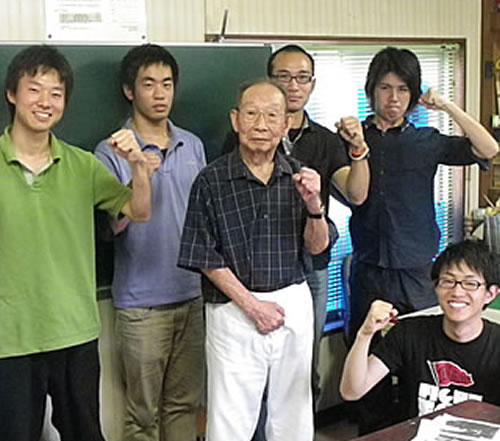 (写真 北原さん宅でお話をうかがった後に記念撮影【12年7月 成田市】)