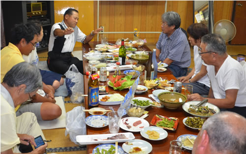 8月27日、京都市の「若狭の原発を考える会」と三里塚反対同盟の交流会が天神峰の市東さん宅離れで行われた(写真)。代表の木原壮林・京都工芸繊維大学名誉教授の希望でこの日の会が持たれた。三里塚闘争と反原発闘争の連帯について反対同盟との間で熱い論議が交わされた。