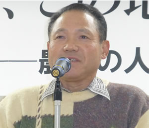 「緊迫の成田!----強制的手段による農地取り上げは許されない」と銘打った第2部では、基調報告、弁護団報告に続いて市東さんが発言(写真)。「裁判長は早く裁判を終わらせたがっていますが、絶対に認められません。この裁判は勝てる裁判です。それには皆さんの力が必要です。私は自然体で一日でも長く天神峰で農業を続けていきます」と訴えた。