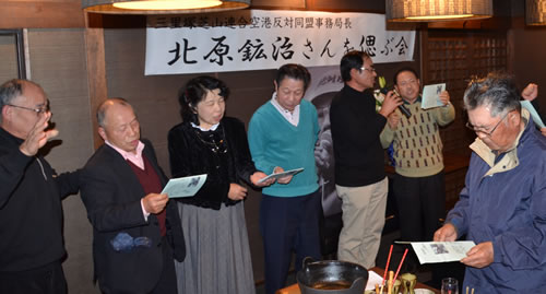 続いて天神峰の市東孝雄さんが、「反対同盟の先頭で50年闘ってきた北原さんの生き方に学び、遺志を受け継ぐ」と述べ、献杯の音頭をとった。