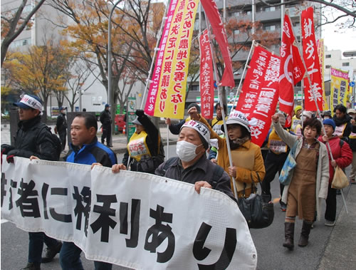 市東さんの生きる権利の剥奪(はくだつ)は、全人民一人ひとりの生きる権利の剥奪だ。強制執行攻撃を粉砕する闘いをわが闘いとして2018年を闘おう。3・8請求異議裁判弁論が決戦中の決戦だ。「強制執行許すな」の署名を集め、総力で3月8日、千葉市中央公園に結集しよう。