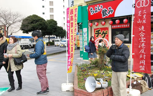 集会終了後、寒風をついて反対同盟と支援連は千葉市繁華街での情宣活動に立った(写真下)。