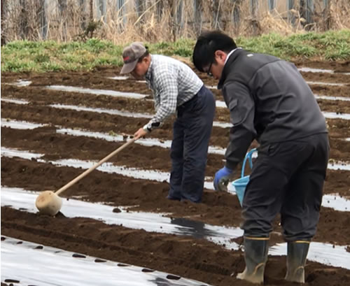 2月下旬から3月以降は春野菜の作付けで忙しい時期です。市東さんの畑では、大根を皮切りに人参、サニーレタス、玉レタス、ジャガイモの作付けが終了したところです! 本来ジャガイモは2月下旬が作付適期ですが、あまりにも気温が低く3月5日になんとか終える事が出来ました! 市東さんもホッと胸をなで下ろしていたみたいです。