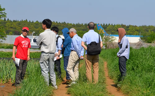 自己紹介後、初参加者を中心に全学連現地行動隊が市東さん宅周辺を案内した。参加者は空港の近さや誘導路を走る飛行機の甲高い音に驚きながら、畑で着実に育つ野菜や堂々と立つ看板・やぐらに感嘆の声を上げた。