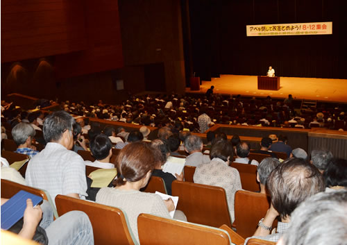 8月12日、東京都墨田区の曳舟文化センターホールで開催された「アベを倒して改憲とめよう!8・12集会」に550人が集まった。