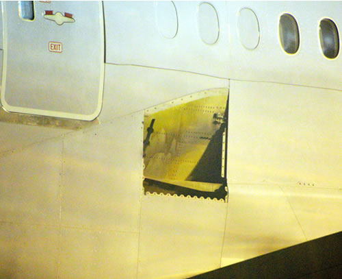 16日午後5時25分ごろ、成田空港に到着した米ダラス・フォートワース発アメリカン航空(ボーイング777)の右主翼の付け根付近パネルの脱落が判明した。(写真)