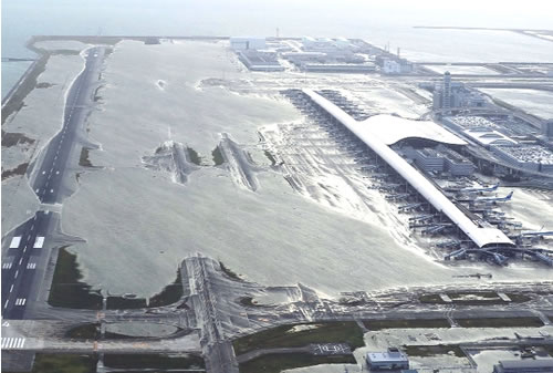 関空は、軟弱地盤の上に造った欠陥空港だ。埋め立て時から1期島で平均13・25㍍(最大15・7㍍)、2期島で平均15・85㍍(最大18・31㍍)も沈下している。護岸のかさ上げやジャッキアップ、止水壁などの沈下対策の弥縫策で維持してきたが、今回の台風で破綻した。空港機能の要をなす地下の電源には海水が押し寄せ水没した。