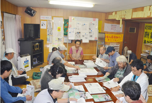 集約では、NAAが同意書取りで住民を恫喝している実態が報告された。最後に市東孝雄さんが一同をねぎらい、裁判に勝利する決意を述べ、次回行動日を10月28日と確認し、一日を締めくくった。