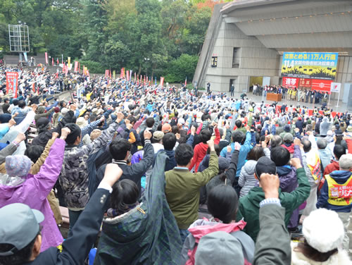 11・4労働者総決起集会 4800人が改憲阻止誓う 反対同盟、「農地死守」の決意