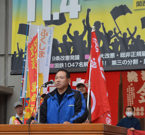 動労千葉の田中康宏委員長は、①改憲・戦争反対に人生をかけて立ち上がること、②労働者のおかれた過酷な状況に対し職場から声をあげること、③新自由主義がもたらした社会崩壊に対し具体的闘いをやる、という3つの方向で労働運動再生をかちとることを訴えた。「関西地区生コン支部への弾圧を許さない」決議を採択。港合同の木下浩平執行委員は来年通常国会までの半年間無数の運動体を組織しようとのアピールを提起した。