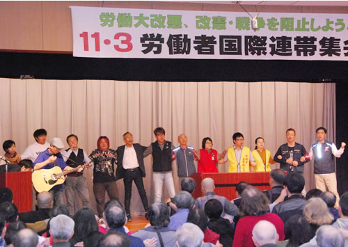 11月3日、「改憲発議絶対阻止! 労組破壊を許すな! 国際連帯の力で、労働大改悪、改憲・戦争を阻止しよう!」のスローガンのもと国際連帯集会が千葉市内で開かれた。日本と韓国、台湾、在日・滞日外国人労働者が一堂に会し、労働者の国際連帯の大きな前進をかちとった。