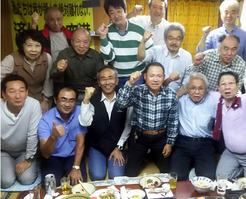 動労千葉の田中康宏委員長は長谷川きよし「黒の舟唄」。反対同盟の萩原富夫さんは玉置浩二「田園」を熱唱。お互いの十八番を披露(ひろう)しあった。