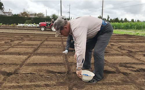 (写真 そら豆の種を植え付ける市東さん【11月6日】)