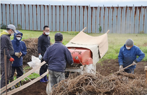 12月9日、市東さんの畑で落花生の脱穀作業をお手伝いしました。(写真)