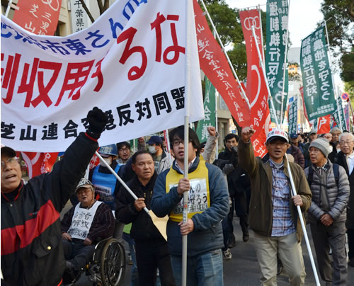 昨年は三里塚の現地において、反対同盟・市東孝雄さんの農地を守り抜く大きな節目の年になりました。一昨年の10月の最高裁決定から約2年間、強制執行を止めるための請求異議裁判が闘われてきました。千葉地裁民事第5部・高瀬順久裁判長は、昨年12月20日の請求異議裁判判決で市東さん側の主張を一切切り捨てる反動判決を下し、強制執行停止を取り消しました。絶対に許すことはできません。