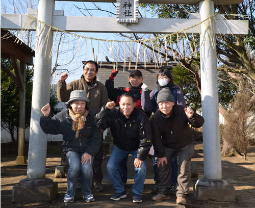 1月13日午前10時、市東さんの農地取り上げ阻止の決意に燃えて反対同盟と支援は、東峰神社に結集した。晴天を切り裂くように着陸する航空機の轟音をものともせず、市東孝雄さん、萩原富夫さんを先頭に鳥居のしめ縄をつけかえ、この地を守ることを祈願した。
