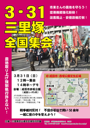 反対同盟は、全国の労働者・農民・学生・市民とともに、そして国策と闘う沖縄・福島と連帯して、今こそ安倍政権打倒をめざして立ち上がります。3・31全国集会へのみなさんの結集をお待ちしています。