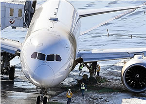 2月1日午前7時前、インド・デリー発の日航機740便(ボーイング787―9型、乗員乗客201人)がA滑走路に着陸した直後、高速離脱誘導路をターミナルビルに向けて走行中に、前夜からの雪と寒気で凍結した路面でスリップし、左主脚が誘導路から逸脱し、ぬかるんだ地面にめり込み動けなくなった。タイヤの半分が埋まるほどで機体は大きく傾き、完全に立ち往生した。
