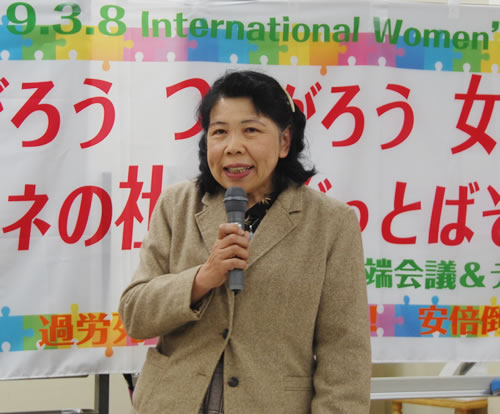 婦人行動隊長の故郡司とめさんはよく『天の半分は女性が支える』と言っていました。今こそ女性が立ち上がることが重要です。杉並区議選に立候補予定のほらぐちともこさんの勝利を何としても勝ち取りましょう。3・31全国集会に集まり、沖縄・福島と連帯し、社会を変えましょう」