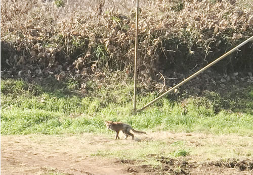 (写真 市東さんが耕す南台農地で腹ごしらえをし空港突入の決意固めたキツネ【昨年12月26日】)