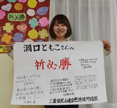 (写真 反対同盟からほらぐちさん必勝祈願のメッセージ )