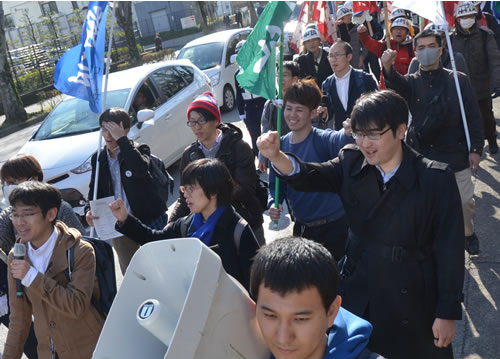 (写真 新歓闘争へ全学連が意気高くデモ )