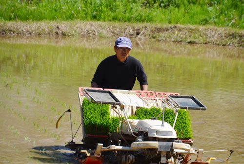 (写真 戦後農業最大の技術革新の一つである田植え機を巧みに操る萩原富夫さん【4月28日】)