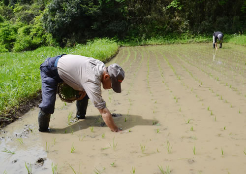 好天の下で田植え