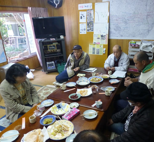 市東さんの畑の採れたて野菜を使った手料理を囲みながら、「市東さんの農地取り上げに反対する会」事務局の小川正治さんや常連となった空港周辺住民の方たちと交流を深めた。
