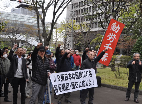 動労千葉・動労総連合は30年以上にわたり国鉄1047名解雇撤回に向けて闘いぬいてきました。そして、国家的不当労働行為の真実(JR不採用基準そのものが不当労働行為であり、基準策定を命じたのは斎藤英四朗JR設立委員長だった)をすべて暴き、その責任がJR自身にあることも突き止めました。解雇撤回まであと一歩のところまで闘いの前進をかちとってきたのです。そして昨年5月、新たな労働委員会闘争を開始しました。しかし、千葉県労委は初めから審理を拒否し、労働委員会規則に違反してまでわずか2回の調査で打ち切りを強行しました。「1047名解雇撤回闘争を終わらせろ」という国家意思に貫かれた攻撃です。そして、労働委員会という労働者の団結を擁護するための機関の解体を通して、労働者の団結権そのものを解体しようとしています。