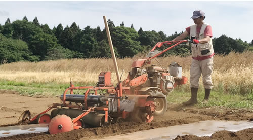 三里塚営農だより 萩原さん宅 落花生の種をまく