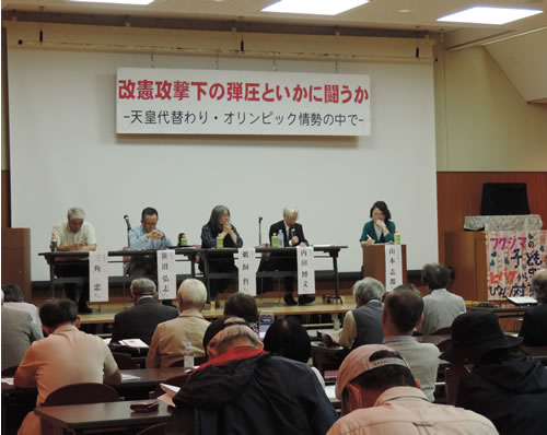 10月6日、救援連絡センター結成50周年記念シンポジウム「改憲攻撃下の弾圧といかに闘うか〜天皇代替わり・オリンピック情勢の中で」が都内で開かれた。(写真)