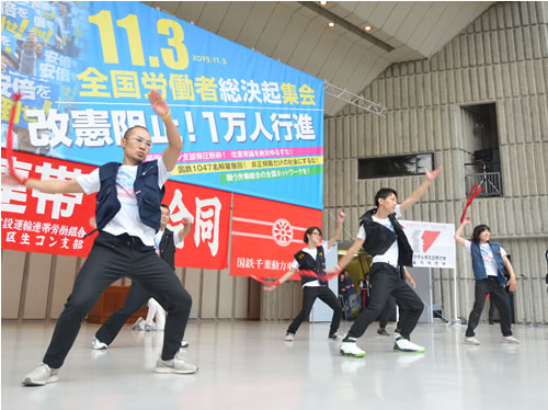 11月2日に千葉市で行われた国際連帯集会、3日に東京・日比谷野外音楽堂で行われた全国労働者集会・改憲阻止!1万人行進に今年も参加しました。