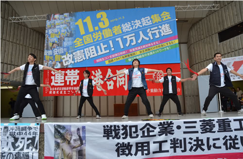 (写真 11・3労働者集会の会場を盛り上げた律動に全学連行動隊も参加。団結いも煮会でも披露予定)