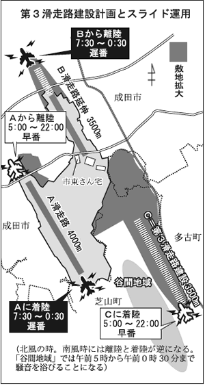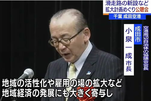 第3滑走路を新たに建設し、現在の空港敷地を2倍化するという成田の「施設変更」を、成田空港会社(NAA)が申請し、それを許可するかどうかを航空法の定めにより国土交通省が「住民や関係者から意見を聞く場」というのが公聴会の建前だ。だが実際ははじめから「やる」という結論ありきで、「意見を聞いた」というアリバイづくりの手続きにすぎない。