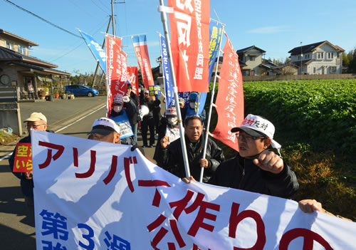 昨年12月24日に行われた成田空港の機能強化をめぐる公聴会でも同じような光景が繰り広げられました。成田市長・小泉一成や芝山町長・相川勝重といった連中は、「共存・共栄」や「地域振興」、「利便性」を声高に叫び、成田の空港機能強化を推進する立場を表明しました。しかし、いくらお金が落ちたところで、静かな空も、安心して子どもを育て暮らせるふるさとも返っては来ません。これに対して、反対同盟を代表して公述に立った伊藤信晴さんはじめ、「これ以上の騒音は許されない」と白紙撤回を要求する公述人が周辺住民から何人も現れています。