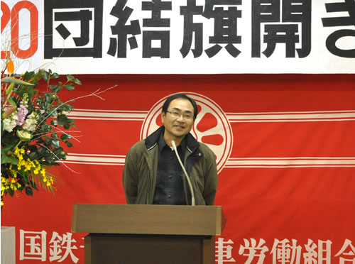 1月11日、動労千葉はDC会館で団結旗開きを行った。参加者は「今年こそ本当の勝負の年」と闘う動労千葉と共に、「労組なき社会」をつくろうとするJR資本と改憲・戦争の安倍政権を打倒する決意と団結を固めた。