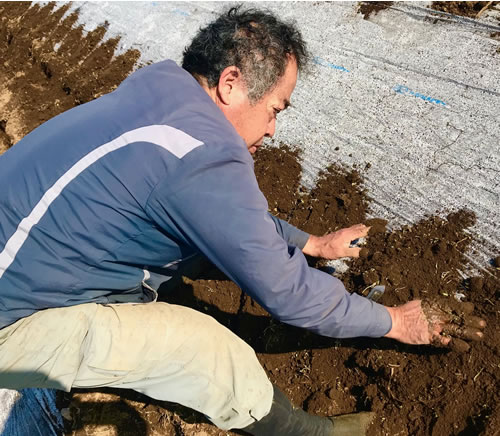 (写真 市東さんの南台農地でじゃがいもの植え付け作業【3月1日】)