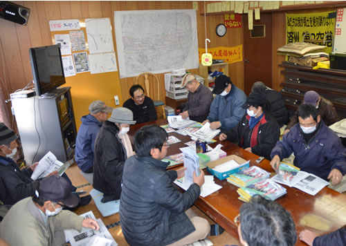 今回用意された反対同盟ニュース第76号は、新型コロナウイルスを口実に「改正特措法」を成立させた安倍政権を弾劾し、集会・デモ禁止の先取りを許さず、3・29全国集会への結集を呼びかける内容だ。一同、ニュースを手に担当地域へと飛び出した。
