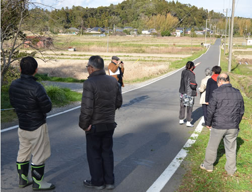 3月16日、関西の反原発団体の「若狭の原発を考える会」などから4人が来訪し、現地調査・反対同盟との交流を行いました(写真)。現地調査では、時間をかけて空港拡張計画予定地及び南北の騒音地域を反対同盟の伊藤信晴さんの案内で見て回り、第3滑走路の大きさを実感し、農村・農業がつぶされることへの怒りを共有しました。
