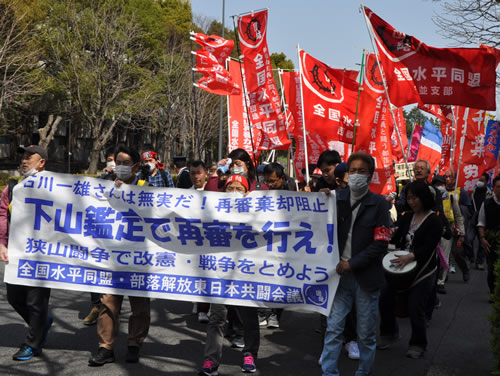 3月22日、全国水平同盟と部落解放東日本共闘会議が呼びかける東京高裁包囲3・22狭山中央闘争が行われ、全国水平同盟の仲間をはじめ、全国から160人が駆けつけた。(写真)