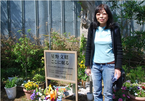 受け入れてくださった反対同盟・市東孝雄さんに心からお礼を申し上げます。2000年に文昭を励まそうと植えられた星の木(こぶしの木)は本当に小さくてこれが大きくなる頃にはきっと出てこられるのではと思っていました。07年には徳島刑務所での面会で北原鉱治事務局長が「出たら三里塚に来いよ」とおっしゃり、文昭は「必ず行きます」と約束しました。もう一度来たいと願っていた文昭の思いを実現したかったんです。