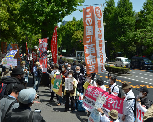 5月1日、「生きさせろ!メーデー」実行委員会の主催で厚労省―官邸前行動が行われ400人が集まった。厚労省に要請書、要求・質問書を提出。官邸前に移動して怒りを叩きつけた。