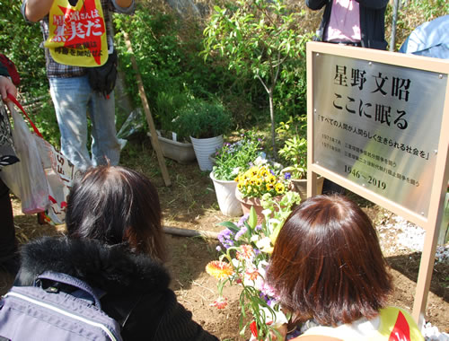 2019年10月27日に「星の木」の根本に分骨がなされたその場所の前面に建てられた名板には、次のように記せられている。『星野文昭/ここに眠る/「すべての人間が人間らしく生きられる社会を」/1971年7月三里塚闘争仮処分闘争を闘う/1971年9月三里塚第二次強制代執行阻止闘争を闘う/1946〜2019』。