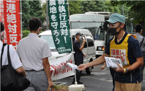 そしてNAAによる違法かつ卑劣な農地強奪の策動を弾劾した。「収用法で取れないとなると、農地法を悪用して民事裁判で取ろうなどというNAAの魂胆に腹が立つ。小作であろうと農民としての生きる権利がある」