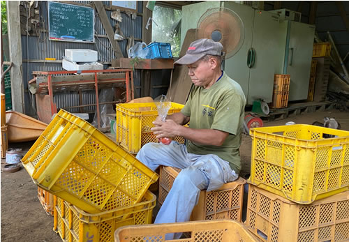(写真 トマトの袋詰めを行う市東さん【9月4日】)